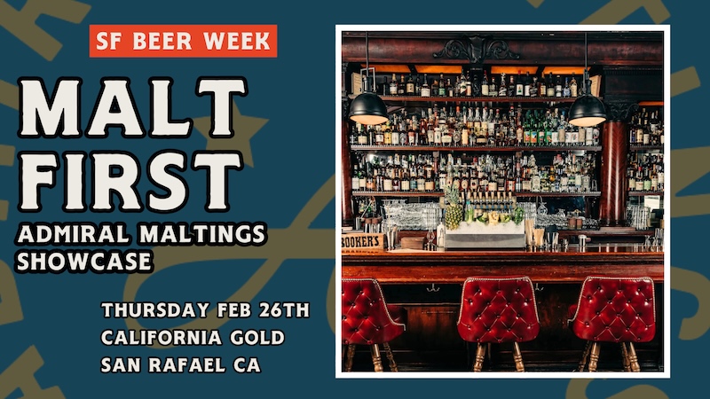 Join us at California Gold in San Rafael for a celebration of craft malt with an exclusive tap list featuring beers brewed with Admiral Maltings’ premium, floor-malted grains. As part of SF Beer Week, this event will showcase the depth and flavor that comes from local malt, poured fresh all day long.