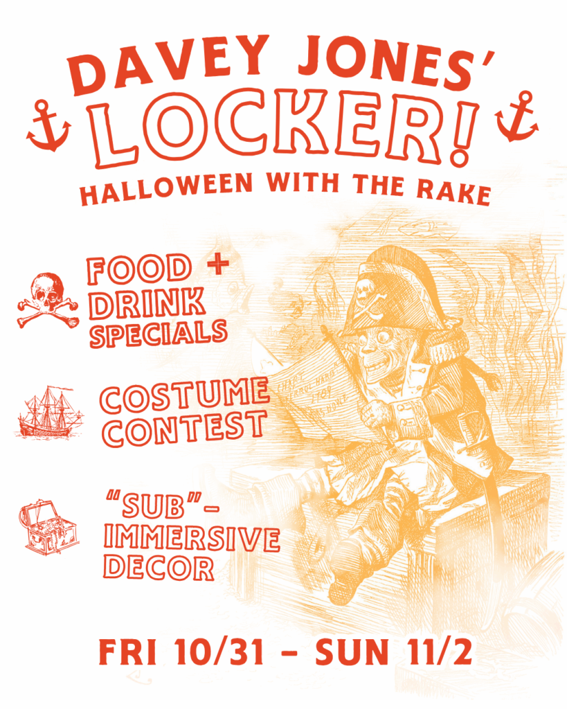 Join us Halloween weekend for an encompassing and delectable experience. Explore Davy Jones’ locker with luscious libations, vitalizing vittles, raucous rhythms and maudlin melodies. Join the ships crew and don your finest nautical garb for photo opportunities with the horrors of the deep.