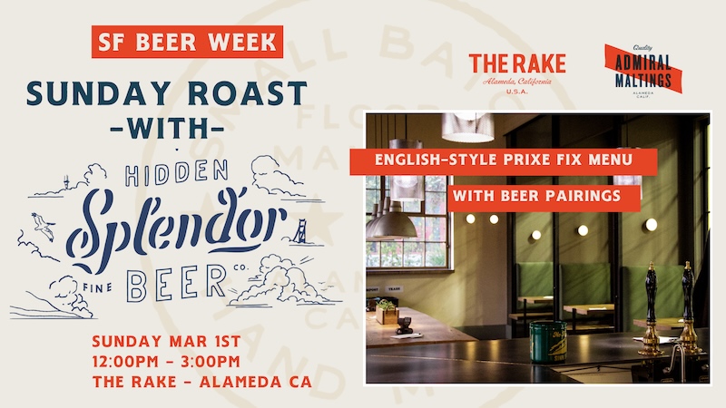 Join us on Sunday, 3/1, for a SF Beer Week take on an English pub institution, the Sunday Roast featuring the beers of Hidden Splendor Fine Beer Co.