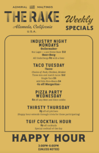 EVERY WEEK: Food / Drink Specials at The Rake